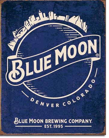 Blue Moon Denver Colorado skyline logo retro. Blue Moon Brewing Company Est. 1995. Measures 12.5" W x 16" H Signs have small predrilled holes on each corner.