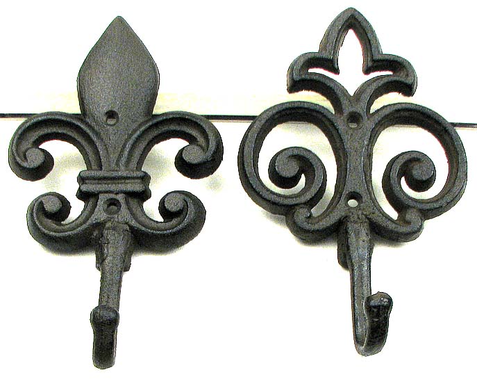 Fleur De Lis Hooks Set of 2 Cast iron Fleur De Lis hooks set of 2. Each measures 7 5/8" x 4 5/8" x 1 3/4"